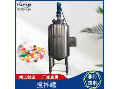 攪拌罐體、攪拌罐蓋、攪拌器、軸封等選用材料可根據不同的工藝要求選用碳鋼或不銹鋼等材料來制作。攪拌罐體與攪拌罐蓋可采用法蘭密封聯結或焊接聯結。攪拌罐體與攪拌罐蓋可根據工藝要求開進料、出料、觀察、測溫、測壓、蒸汽分餾、安全放空等工藝管孔。攪拌罐蓋上部配置有傳動裝置(電機或減速器),由傳動軸驅動攪拌罐內的攪拌器。軸封裝置可采用機封或填料、迷宮密封等多種形式(根據用戶需要確定)。由于用戶生產工藝要求不同,攪拌器可配置漿式、錨式、框式、螺旋式等多種形式。如有其他要求可與本廠聯系,另行設計制作。